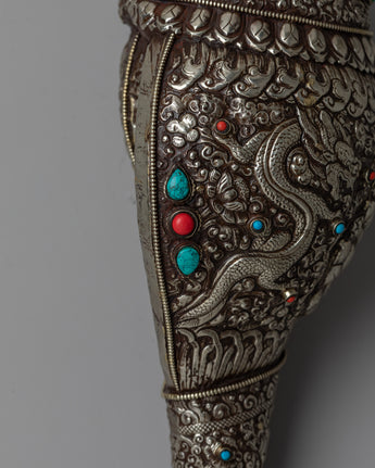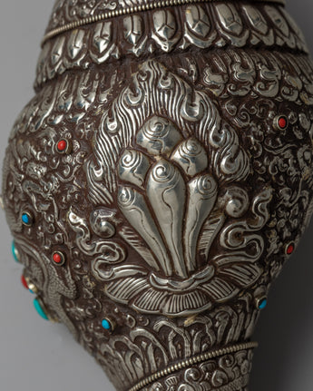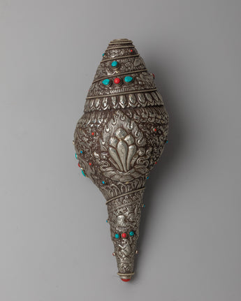 White Metal Conch Shankh | Symbol of Purity and Divine Resonance in Spiritual Rituals