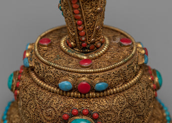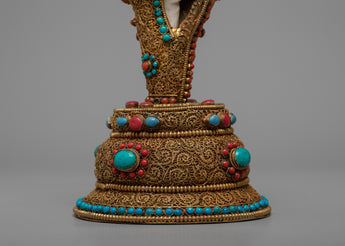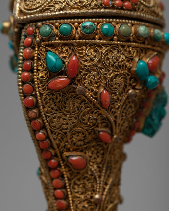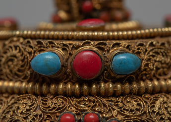 This piece's exquisite copper work is gold-plated and seku design. This exquisite item, used for offerings, is a must-have for any serious collector or dedicated Buddhist practitioner. The attention to detail and craftsmanship demonstrated in this one-of-a-kind masterpiece are astounding.