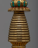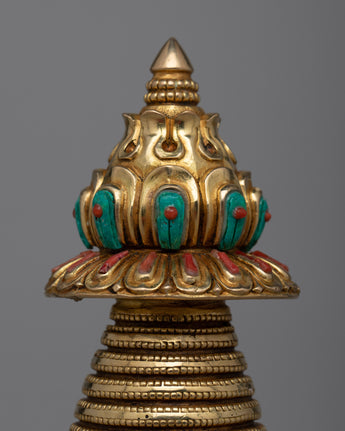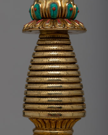 The stupa gains a feeling of grandeur and sacredness with the addition of 24k Gold Plating , which also heightens its aesthetic appeal and spiritual relevance. The Copper Eight Auspicious Symbol Stupa is a potent conduit of blessings, bringing serenity, harmony, and spiritual fulfillment into the lives of people who witness it, whether it is shown in private altars, meditation areas, or holy settings.