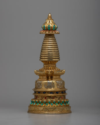 Copper Eight Auspicious Symbol Stupa | Inspiring Divine Connection and Inner Peace