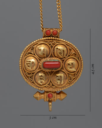 This Ghau Locket goes beyond ordinary adornment; it is a vessel of spiritual grace and beauty. The combination of copper's enduring strength, the allure of 24k gold, and the vibrant coral stones result in a captivating visual symphony. However, the engraved mantra elevates it to a higher level of spirituality. It's more than just jewelry; it's a wearable prayer, a symbol of reverence, and a tribute to the exquisite artistry of tradition.