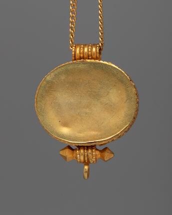 Discover the Copper Ghau Locket, a spiritual marvel that combines artistry and devotion. This one-of-a-kind locket is meticulously handcrafted on a copper body to represent strength and tradition. It gleams with 24k gold plating and exudes celestial elegance. The intricate coral stone inlay adds vibrancy and depth to its aesthetic. But there's more: a sacred mantra is lovingly engraved on the locket, imbuing it with profound spiritual meaning.