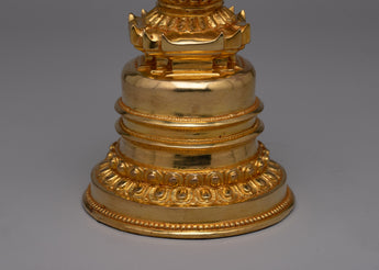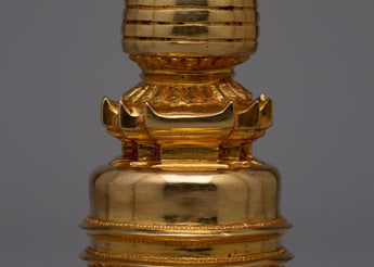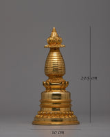 The Stupa with Copper and Gold Plates is an example of both artistic design and religious importance. It is 20.5 cm tall and handcrafted on a Copper body. The stupa is plated in rich gold, a symbol of spiritual enlightenment and purity in Tibetan Buddhist traditions.