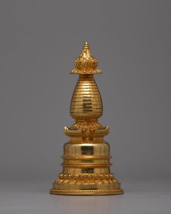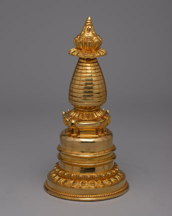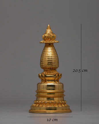 Copper Gold Plated Stupa | Artisan Crafted Buddhist Shrine Decoration