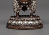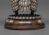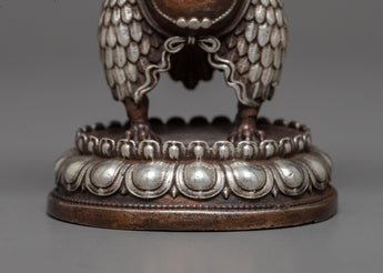 Presenting our magnificent Copper Machine-Made Garuda Statue, which embodies strength and protection. This statue, with its dazzling silver plating and oxidized copper body, is a masterful depiction of the ferocious and majestic presence of the Garuda. Raising its head to a majestic 9cm height, it radiates strength and dignity.