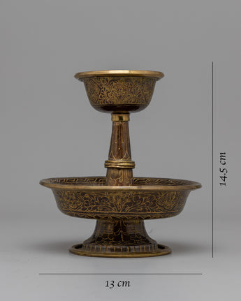 The Serkyem Set is more than just an object; it's a vessel for devotion and gratitude. It serves as a means to present offerings such as water, tea, or other sacred substances during your ceremonies, providing a direct link to the age-old traditions that continue to inspire your spiritual journey.