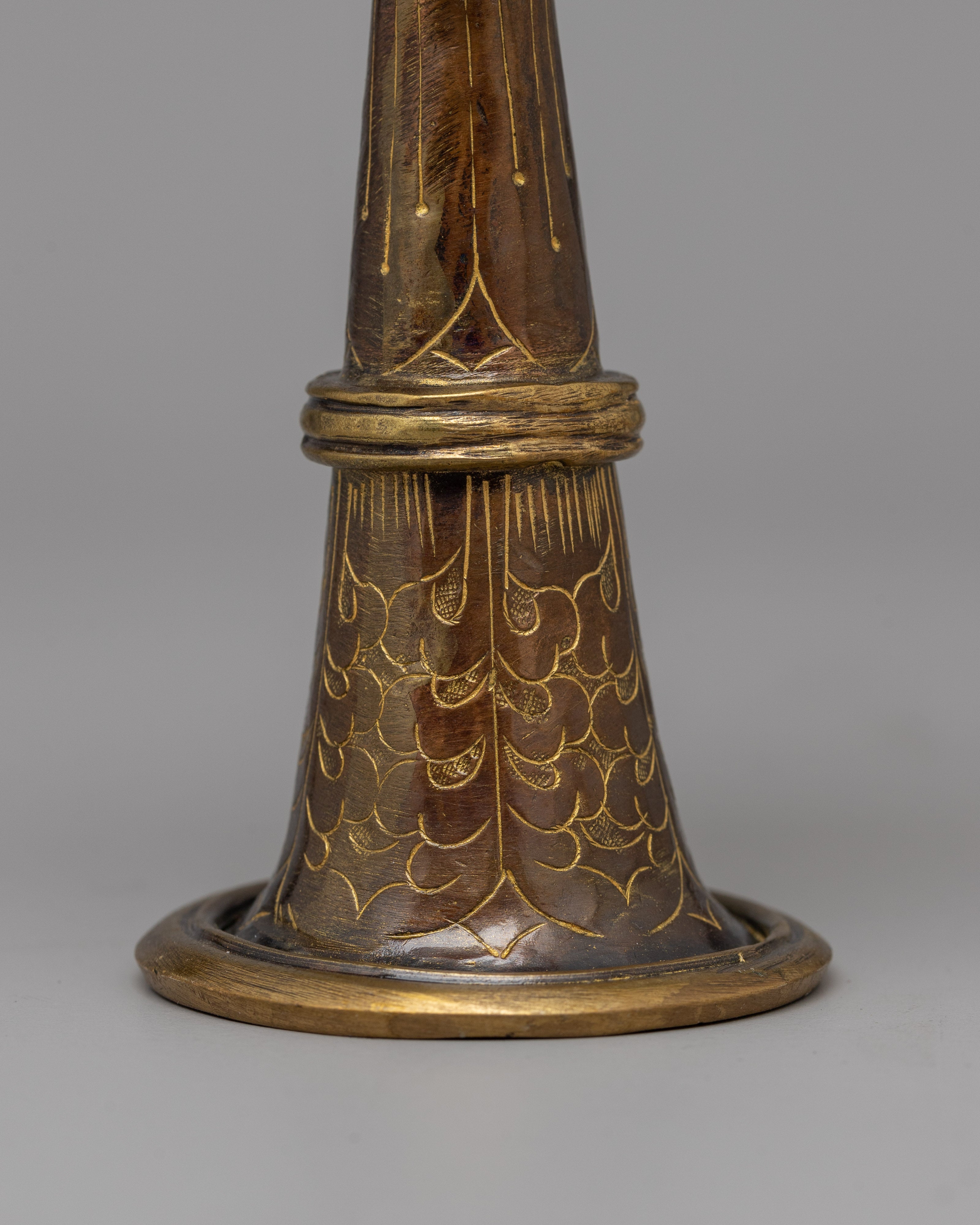 The lustrous copper body, aged to perfection with an antique finish, not only exudes an aura of authenticity but also adds a touch of historical allure to your sacred space. Its elegant design and the patina of age create a bridge between the present and the past, allowing you to infuse your ceremonies with the charm of bygone eras.
