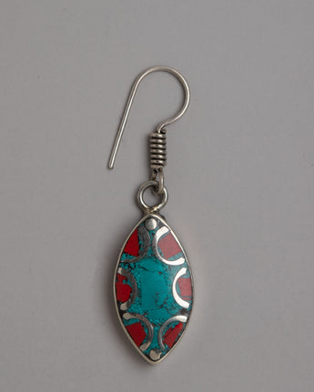 Our exquisitely handcrafted Coral Earrings, plated in silver and set with turquoise and coral stones, will add a pop of color and elegance to your ensemble. Measuring 4 cm in length, 12 mm in breadth, and weighing 0.004 kilogram, these earrings provide a subtle yet attractive accent to any outfit.