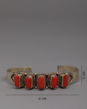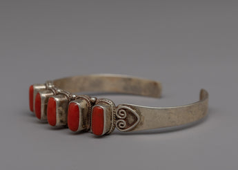 Handcrafted Tibetan Silver Coral Bracelet | Exquisite Coral Buddhist Jewelry