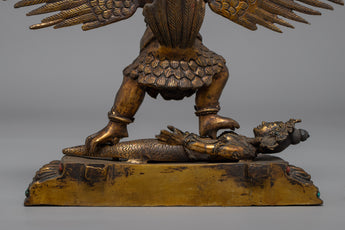 The Garuda are considered to be huge eagles in Buddhism. Suparna, which means "well-winged, having good wings," is another name for them. They are similar to the Nagas in that they exhibit traits of both animal and celestial entities, making them one of the lower devas. When the Garudas want to interact with mankind, at least some of their rulers and cities can magically transform into human shapes.