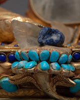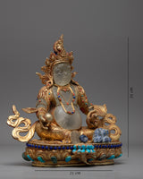 This exquisitely crafted Crystal Kuber statue has a copper base with a real 24-karat gold coating, crystal and turquoise and lapis lazuli stones placed throughout. The statue in gold gilt is ideal for any Vajrayana practice. Presenting a Dzambhala statue is helpful for everyone and everywhere.