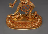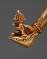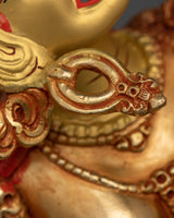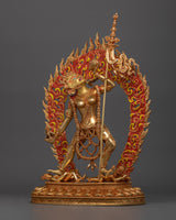 This statue's every curve and angle has been carefully crafted to capture the mystical and alluring charm of the Vajrayogini. Her transforming power has been perfectly portrayed by the artists, from her burning stare to her flowing dance moves. This piece is a fascinating addition to any collection because of its delicate design and colorful gold plating. It is perfect for anyone who are drawn to the profound spiritual trip that Vajrayogini gives.