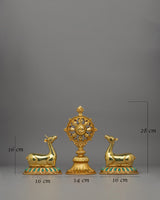 Dharma Wheel and Couple Deer Set | Plated Buddhist Shrine Decor