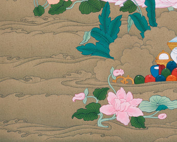 As requested for consecrations/blessings, we can take thangka to Monasteries/Rinpoches from nearby Boudha Stupa. We kindly ask you to offer $50 for the monasteries for blessings/consecration services.