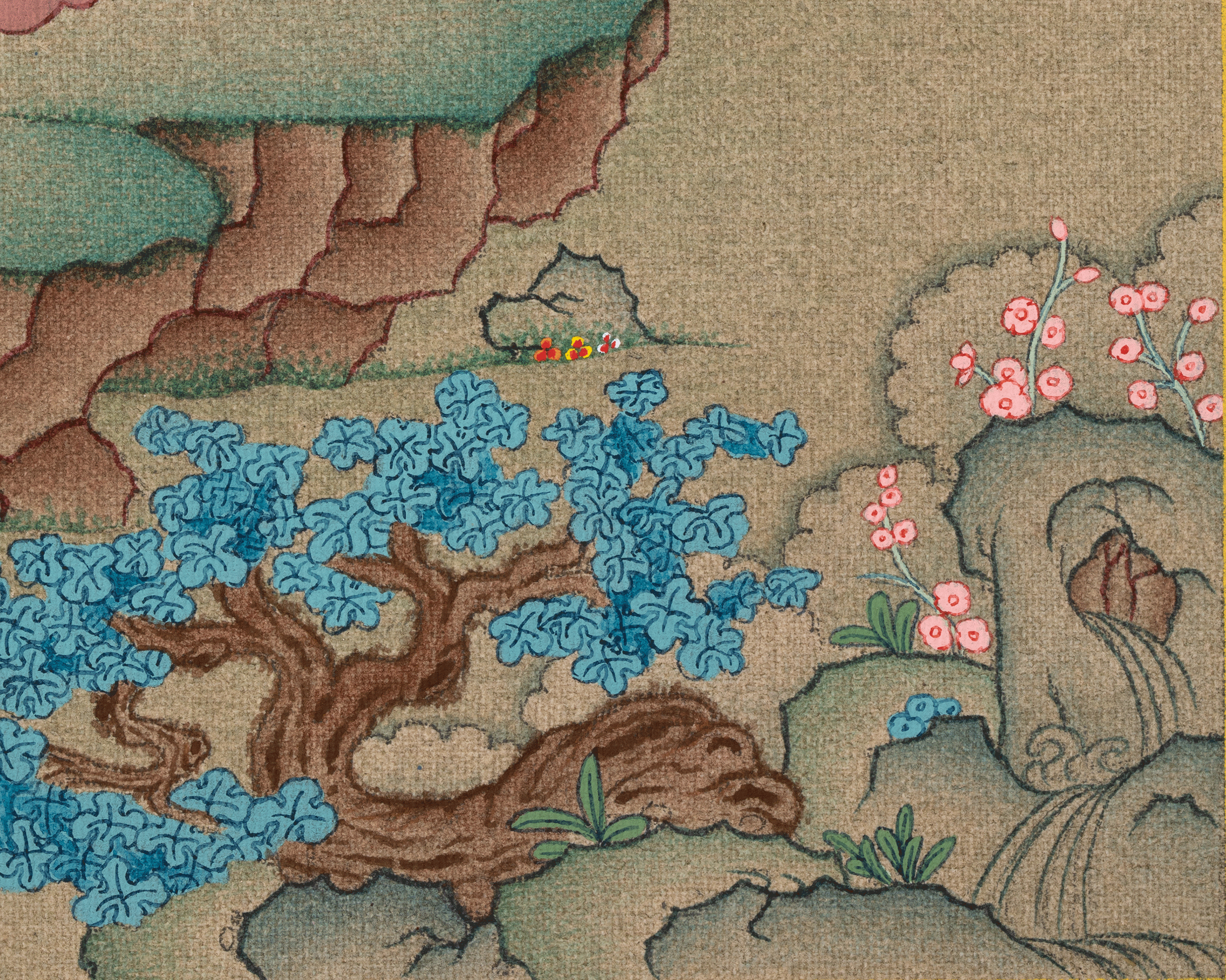 HAND-PAINTED WITH NATURAL STONE COLORS AND GENUINE 24K GOLD IN TRADITIONAL MARTHANG STYLE