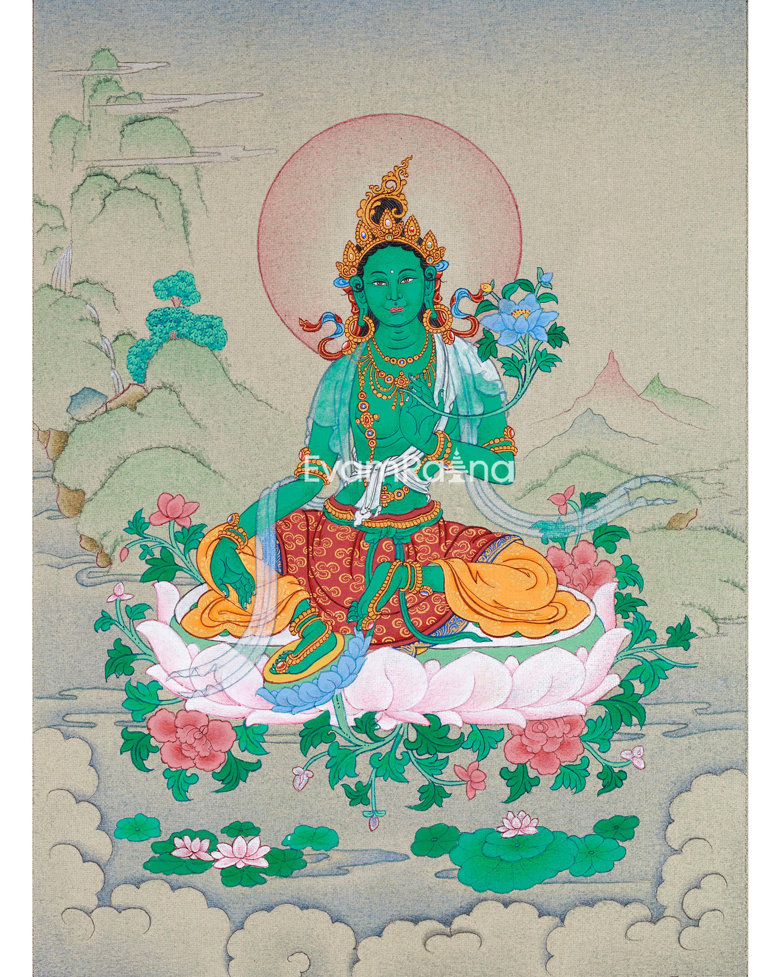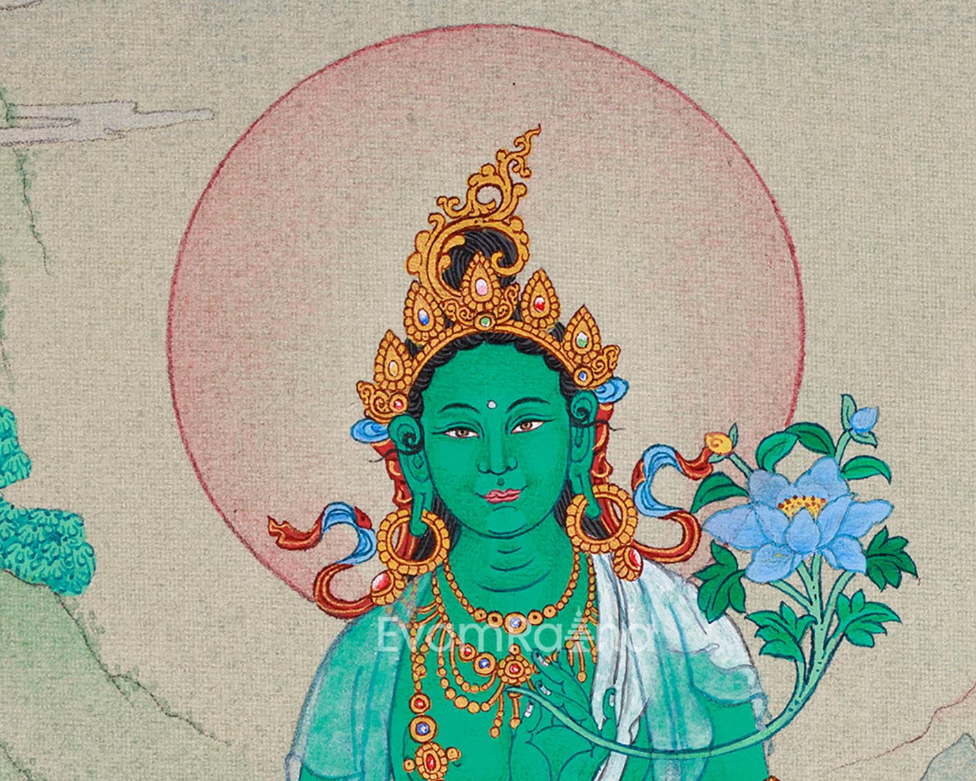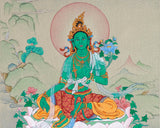 Divine Feminine Thangka - Hand-Painted Green Tara Tibetan Painting