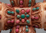 Double Dorje represents the indestructibility and efficiency that overcomes all obstacles. Symbolically, Dorje Vajra destroys ignorance. In Tibetan Buddhist rituals, the vajra is often used with the bell, which represents respectively the masculine and the feminine, the ying and the yang, the effective action, and the compassion. The shape of the Tibetan Dorje is symmetrical, the two pyramidal heads representing samsara and Nirvana, which cancel each other out in its center thanks to the ring of Emptiness. Having a Dorje at home would have positive virtues against the various attacks we suffer.