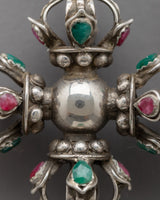 Behold the captivating beauty of our Double Vajra Locket, meticulously crafted in Nepal with solid silver. This sacred emblem symbolizes strength and enlightenment, casting a radiant and profound symbol. The Double Vajra Locket is adorned with precious gemstones like Coral, Irani, and Lapis Lazuli, each emitting vibrant hues and invigorating energies.