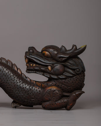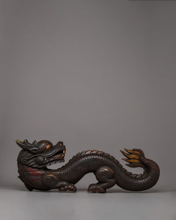 The dragon, portrayed with fantastic attention to detail, is a symbol of strength, power, and good fortune in many civilizations. The sparkling hand-painted colors and complex patterns bring the dragon to life, highlighting the artist's extraordinary skill and artistic legacy. Our Wooden Dragon Statue provides a sense of cultural richness and mythological enchantment to any space, making it ideal for display in your home, business, or gallery. It evokes wonder and admiration.