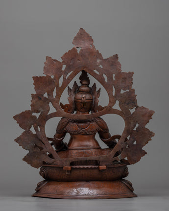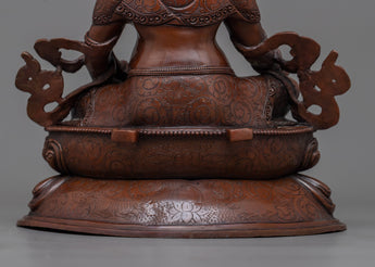With our Dzambhala Oxidized Sculpture, a portrayal of the Buddhist deity of wealth and success, you may bring the spirits of abundance and prosperity into your home. This sculpture combines the ancient charm of oxidized copper with the rich tradition of Buddhist art, and is intended for individuals who value exquisite craftsmanship and spiritual symbolism.