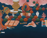 The Dzambhala Thangka, which portrays the venerated deity linked to wealth and prosperity, is a compelling example of Tibetan Buddhist spirituality. This holy piece of art creates a visual tapestry that entices viewers into the rich world of Tibetan religious symbolism through its exquisite use of 24K gold and natural stone colors. It radiates a divine luminosity. The thangka, which is painted in the recognizable Karma Gadri style, is a work of art with fine details and textures that evoke reflection on the god's benign presence. The Dzambhala Thangka, which captures the spirit of Tibetan Buddhist artistry and devotion, is a potent visual meditation with its harmonious composition and rich spiritual narrative.