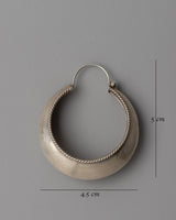 These Elegant Oval Silver Earrings, measuring 5 cm in height and 4.5 cm in width, have a lightweight design weighing 0.010 kg. The slightly expanded oval design represents balance and continuity, whereas the thickened base represents strength and stability. Their rope-like decoration along the inner borders exemplifies traditional craftsmanship, bringing refinement to the basic form. These earrings, made of silver, and appropriate for both everyday and exceptional events, combining ageless elegance with symbolic importance.