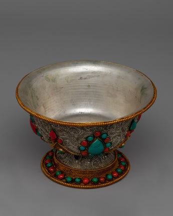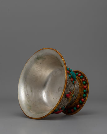 Elegant Lapis Lazuli & Coral Adornments Offering Bowl Set | Buddhist Altar