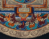 Our thangka is a handpainted Tibetan art done using traditional methods. It is a unique piece created using genuine 24K gold and natural stone colors.