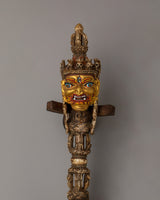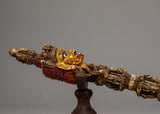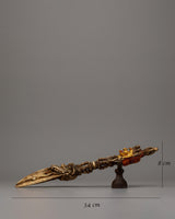 The Phurba is a potent tool for meditation, rituals, and spiritual ceremonies because of its elaborate design and symbolic meaning. It can be employed in ceremonial rites or displayed prominently in sacred locations thanks to its revered wood stand.