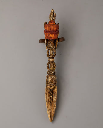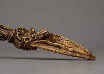 The handcrafted, ceremonially significant, and ethically sourced bone phorba is made with great care and attention to detail. This Phurba symbolizes both spiritual significance and environmental conscience because it is made from bone that is responsibly procured.