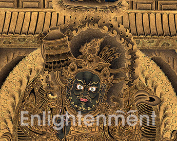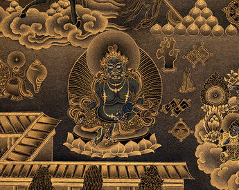 Exclusive Namtoshe Palace Thangka | Traditional Himalayan Art in Black & Gold | Authentic Painting Of Wealth Deity