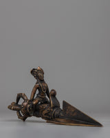 This Phurba is made of high-quality brass metal and has an antique polish, which oozes beauty and authenticity. The delicate embellishments represent excellent workmanship influenced by centuries-old traditions, bringing the spiritual energy of the Himalayas to your practice. Whether used for meditation, rituals, or as a statement piece of Himalayan decor, this Phurba connects you to Vajrakila's almighty force, boosting your spiritual journey.
