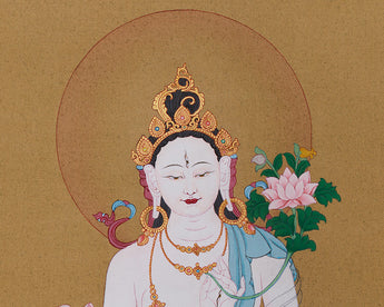 Female Bodhisattva White Tara Thangka | Hand-Painted in Karma Gadri Style with 24K Gold Accents