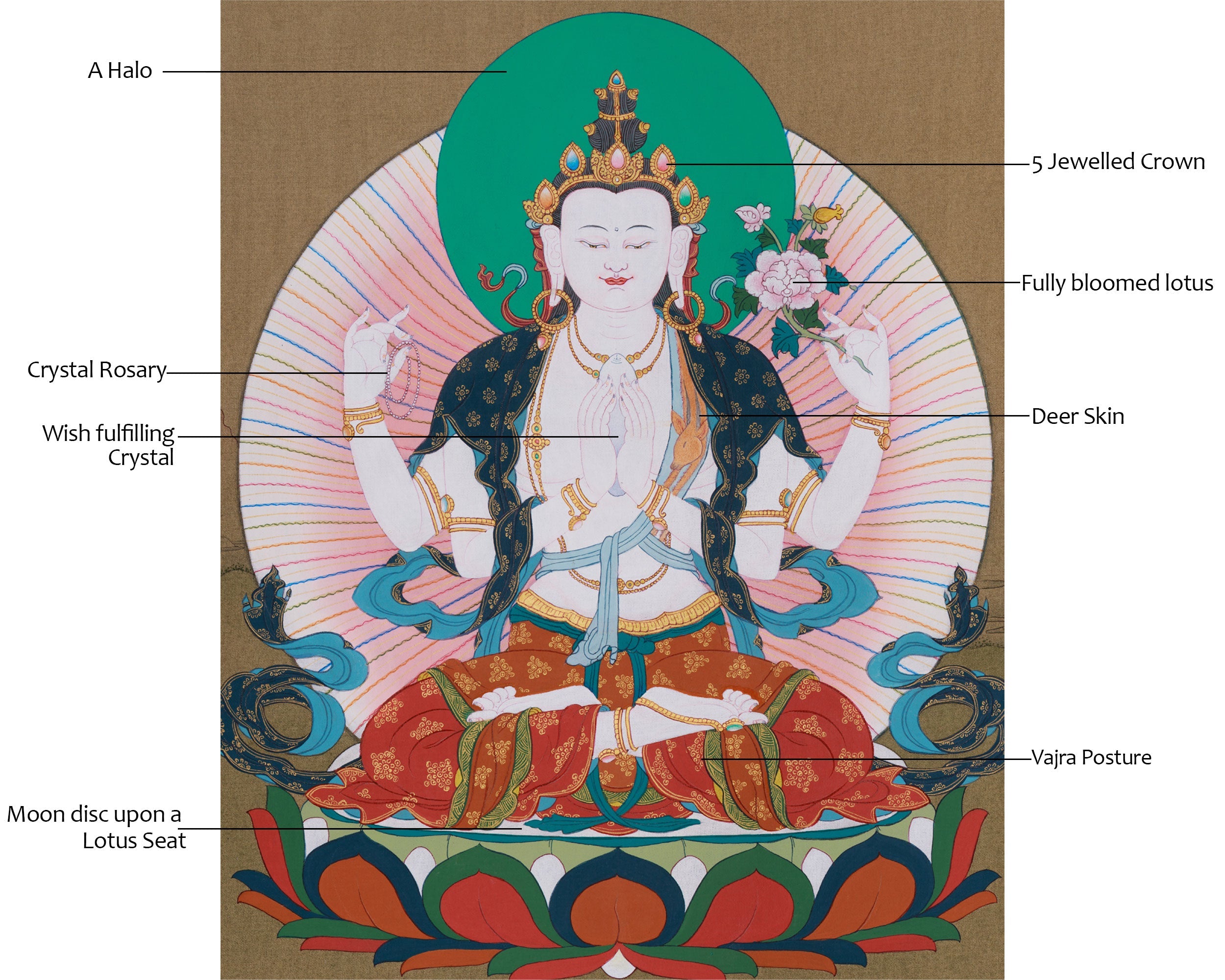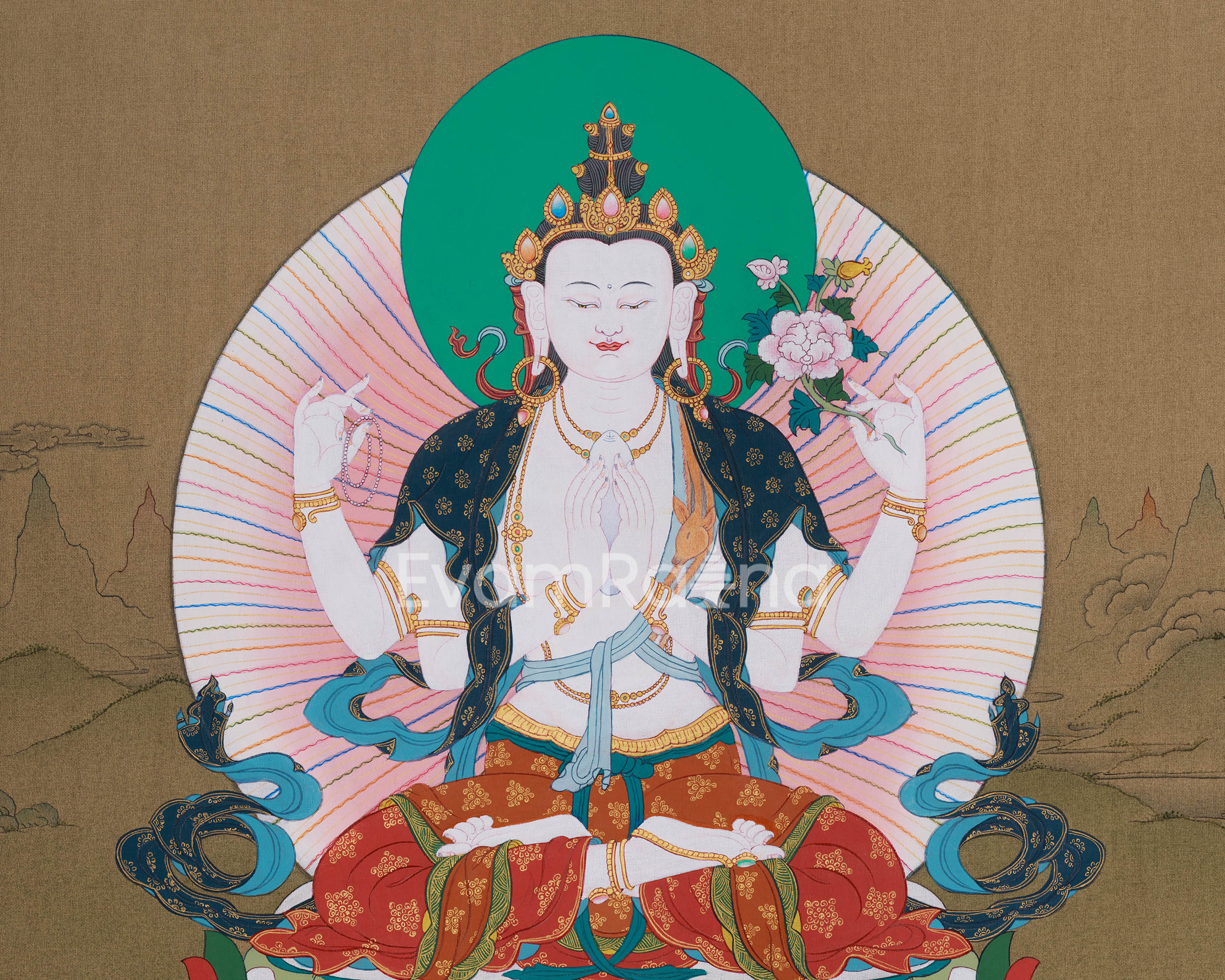 Four-Armed Avalokiteshvara, The Bodhisattva of Infinite Compassion | Karma Gadri Artistry