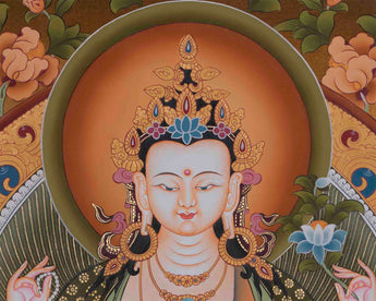 It goes without saying that every detail of a painting has a symbolic meaning. Regardless of your religious affiliation, a thangka can help you on your path to enlightenment, whether you practice Buddhism or have other religious convictions. Thangkas are paintings that depict deities with various iconographic elements and symbolism that encourage meditation on the teachings of the god they depict. Any thangka is intended to aid in the removal of the film of ignorance, which is a significant barrier to the road to enlightenment. The Thangka is revered as a holy item. They promote positivity, spread Buddhism's teachings, bring about peace, harmony, and oneness, and dispel any negative energy that may be there.