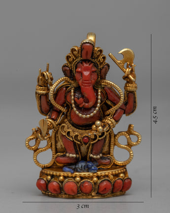 With the magnificent Ganesh Ji Gold Locket, you can indulge in the holy benefits of Lord Ganesh. This locket radiates elegance and reverence. It is handcrafted with great care on silver and studded with real gemstones such as lapis lazuli, turquoise, coral, each one filled with its own unique energy. Measuring 4.5 cm in height, it is a concrete representation of prosperity and spiritual protection.