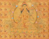 The Big Size Gold 108 White Tara Thangka, a symbol of White Tara's compassion, is a guiding light for those seeking peace and spiritual enlightenment, suitable for meditation, altars, or sacred spaces.