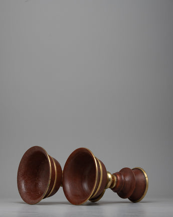 With their celestial luminosity and painstaking handcrafting on oxidized copper bodies and gold plated, the Ghee Butter Lamp Set will illuminate your holy ceremonies. With dimensions of 21 cm in height, each light is imposing and has an inner depth of 7 cm to accommodate your offerings. The set as a whole weights 2.14 kg and combines great workmanship with functionality.