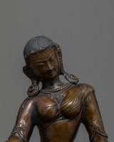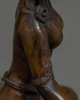 This is a copper made idol statue of goddess Parvati that has an attractive old-fashioned look.