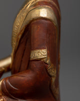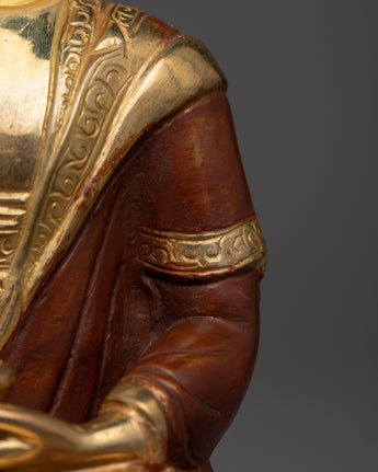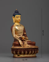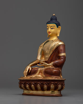 Presenting the magnificent work of divine art known as our Gold Gilded Shakyamuni Buddha. This exquisite statue is adorned with 24k gold gilding that shimmers like the sun's rays and stands as a beacon of spiritual grace. It is made of copper and represents both power and calm.