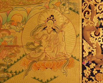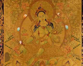 Gold Green Tara Thangka | Religious Buddhist Painting | Wall Decors