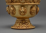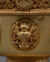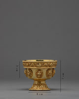 Gold Offering Bowl, beautifully handcrafted with auspicious Buddhist symbols and fantastic detail making it an incredible addition to your ritual altar.