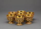 Gold Offering Bowls handcarved with Tibetan Symbols