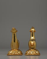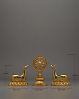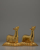 Gold-plated Dharma Wheel with Deer Set - Sacred Buddhist Decor