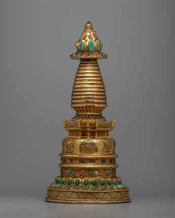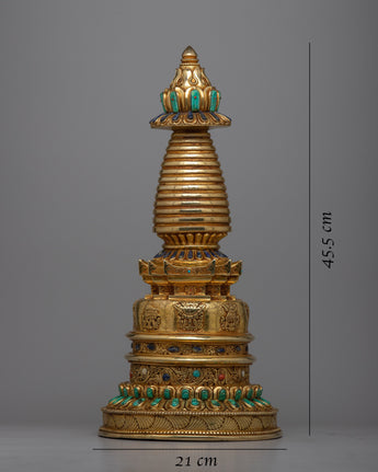 Gold Plated Kadampa Stupa | Invoking Serenity and Divine Blessings