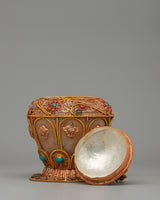Gold-Plated Offering Vessel for Sacred Spaces - Turquoise & Coral Inlay