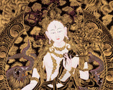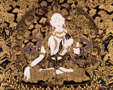 Gold Style White Tara Painting | Original Hand-Painted Female Bodhisattva Thangka