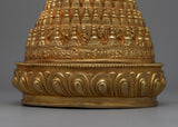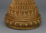The Golden Stupa is a magnificent work of art that combines artistry and spirituality. It is meticulously crafted with a Copper body adorned with resplendent 24k Gold Plating , exuding opulence and deep symbolism.