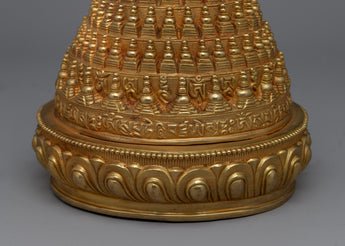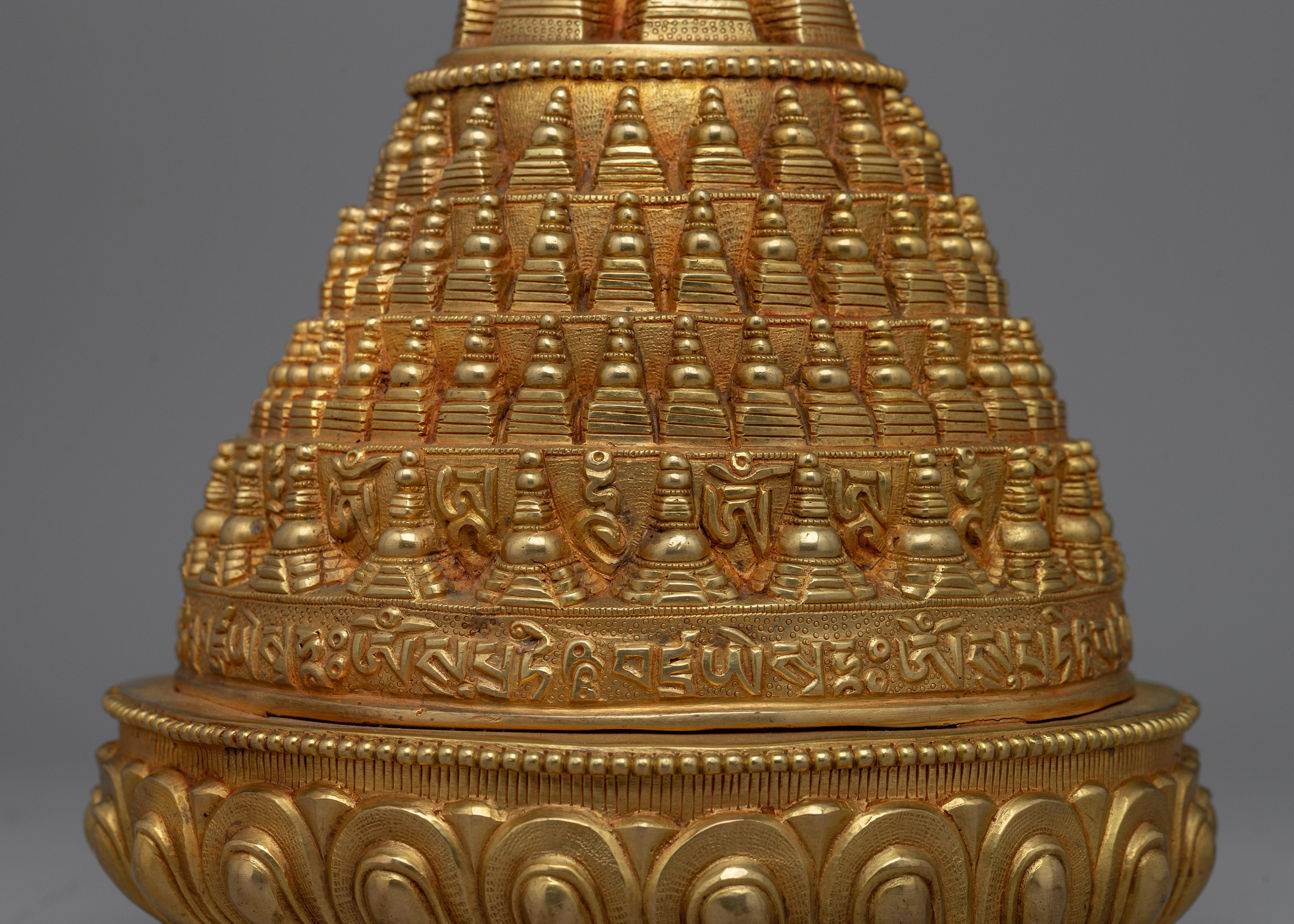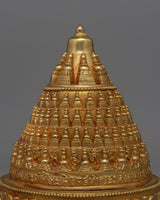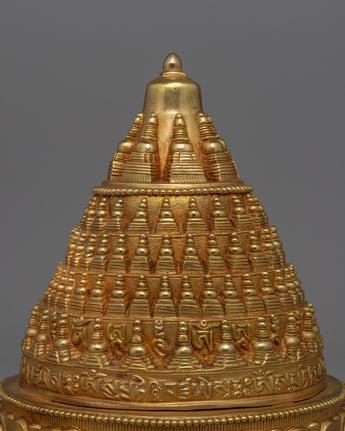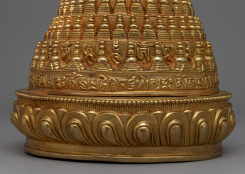 A stupa is a sacred monument that represents the enlightened mind in various spiritual traditions. The addition of Gold Plating raises its status, representing purity and spiritual wealth.