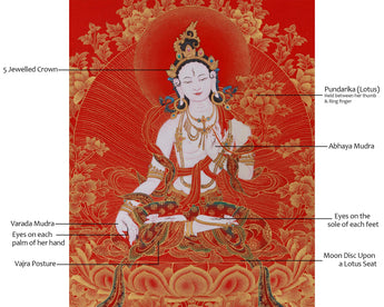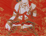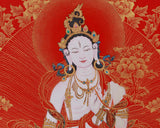 Small Golden White Tara Goddess Artwork | 24K Gold Thangka on Red Canvas